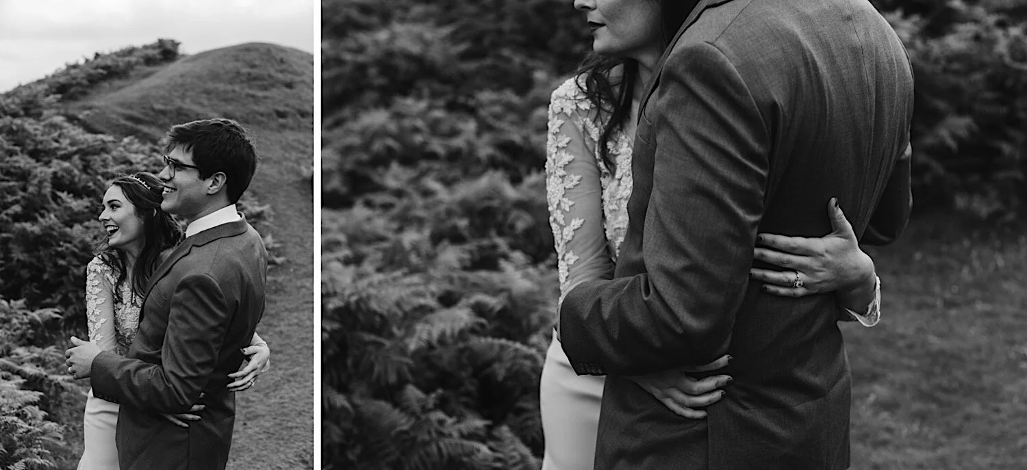 Elope amongst the fairy pools and let the captivating landscape transport you to a world of wonder. With its tranquil atmosphere and untouched beauty, the Fairy Glen is a haven for couples seeking an extraordinary and unforgettable wedding experience. Seize the opportunity to create timeless memories in this ethereal setting, Fairy Glen is an absolutely magical place like no other in Scotland. Located on the Isle of Skye, it has a totally otherworldly feel, with the road winding around small round-topped grassy hills with lochans (a Scottish word for ponds) in between. I always say that I wouldn’t be surprised if I would come across a fairy or troll here. Mandie and Justin decided to have their Humanist ceremony conducted by one of my favourite Humanists Penelope Hamilton there. We took advantage of the summer light and opted for a late start at 7pm to avoid the flocks of tourists. Did you know that in Scotland in the summer it doesn’t get dark until past 10pm? Absolutely perfect for when you would like to marry in a touristy spot without the tourists. Mandie and Justin didn’t want any flowers included in their wedding package which is something we can offer our couples. It was lovely working with Lynn from Skye beauty. Choosing the Fairy Glen for your elopement is a decision that will make your special day truly magical. This mystical retreat offers an intimate and romantic setting, far away from the hustle and bustle of everyday life. The Fairy Glen's untouched beauty and serene atmosphere create a sense of calm and tranquility, allowing you to focus on each other and the love you share.